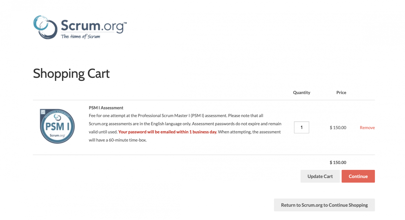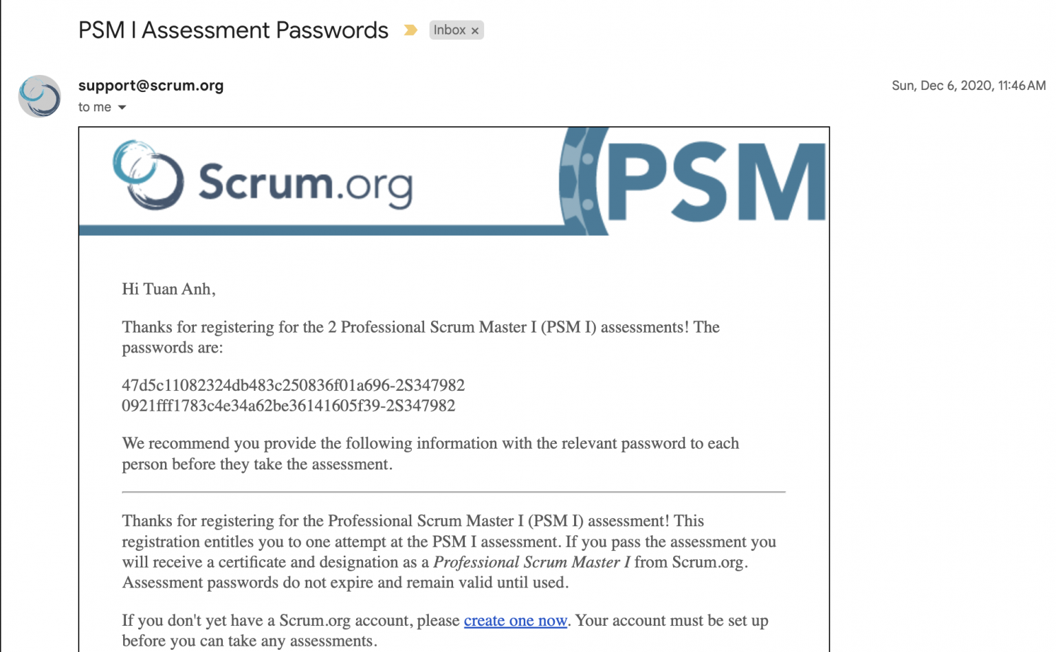 After purchasing the Assessment Ticket, you will receive an email from Scrum.org containing detailed instructions and your exam access code.